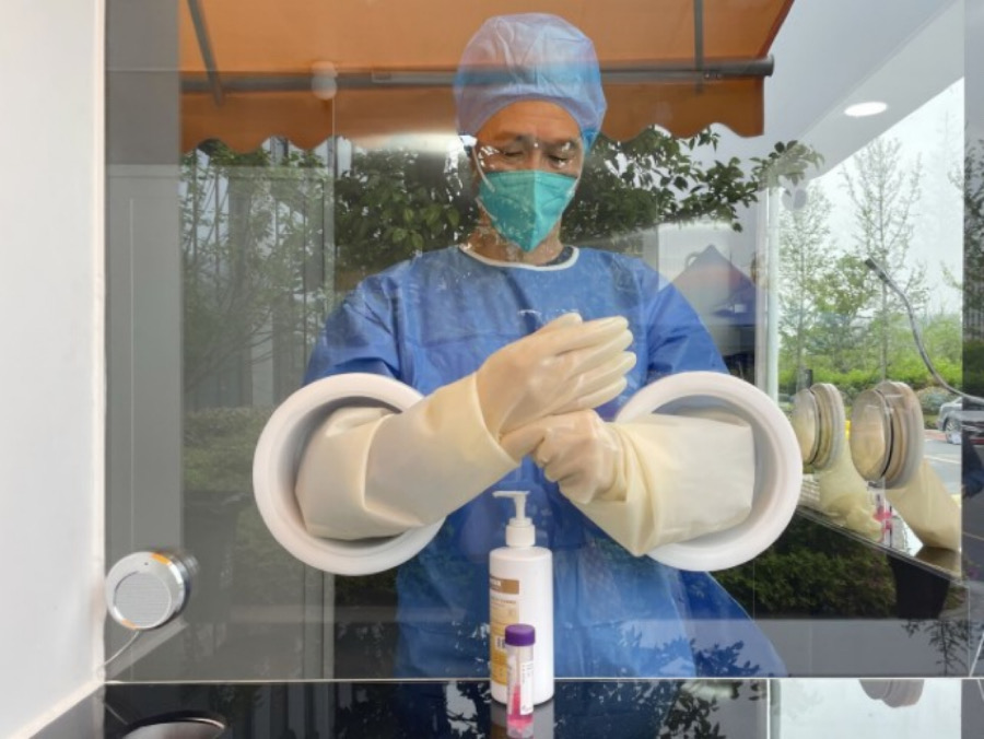 近日,由我校工業設計團隊研發的“核酸采集數字服務站”在余杭區國際會議中心正式服務上崗。該服務站的最大優勢在于核酸采樣人員不需要穿防護服,就能在保證安全情況下完成核酸采樣。