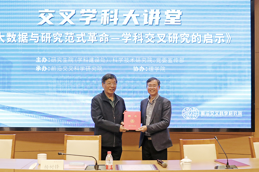 會上,李小年校長和前沿交叉科學研究院負責人分別為楊樹鋒院士頒發“交叉學科大講堂”紀念證書及前沿交叉科學研究院學術委員會委員聘書。