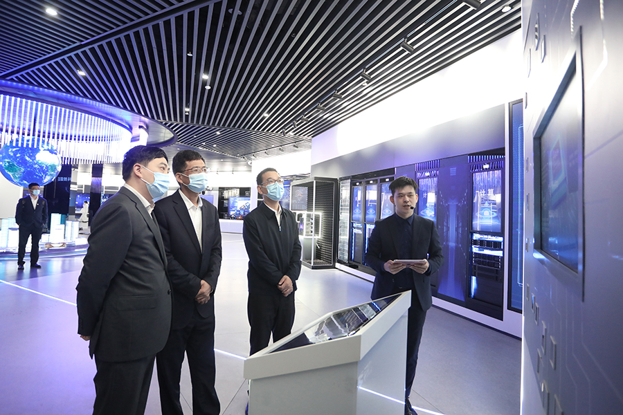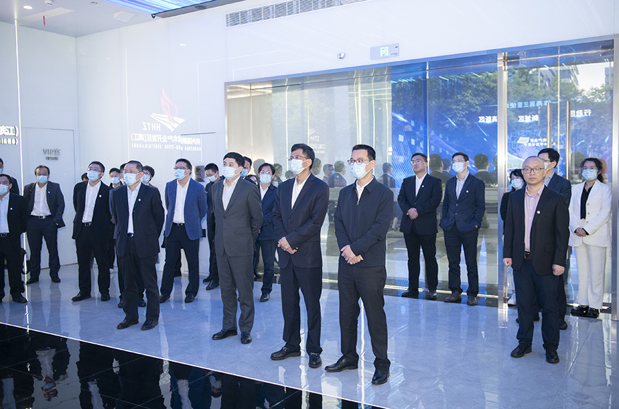 會(huì)前,蔡袁強(qiáng)、鄭華均參觀智慧e谷展廳,陶峰、王理生陪同。
