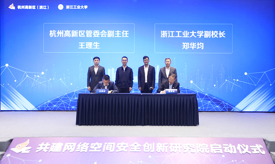5月13日下午,我校與杭州高新區(qū)(濱江)共建“濱江區(qū)浙工大網(wǎng)絡(luò)空間安全創(chuàng)新研究院”啟動(dòng)儀式在濱江舉行。學(xué)校黨委書(shū)記蔡袁強(qiáng)與區(qū)委書(shū)記章登峰出席并致辭。校長(zhǎng)李小年、副校長(zhǎng)鄭華均,區(qū)委副書(shū)記、區(qū)長(zhǎng)鄭迪,區(qū)領(lǐng)導(dǎo)陶峰、王理生出席。