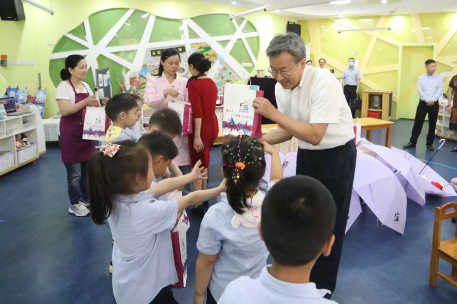 因為疫情防控的要求,今年“六一”活動是以班級為單位開展的。李小年一行參觀了夢溪園區(qū)和尚德園區(qū),實地查看了幼兒園的室內(nèi)外活動場所、生活及活動情況,現(xiàn)場觀看了中班和托小班小朋友們的游戲活動,并與小朋友們一起互動,現(xiàn)場歡聲笑語、熱鬧非凡。李小年代表學(xué)校向小朋友們表達了關(guān)愛之意,祝小朋友們節(jié)日快樂、健康成長,并給小朋友們送去了精美的禮品。
