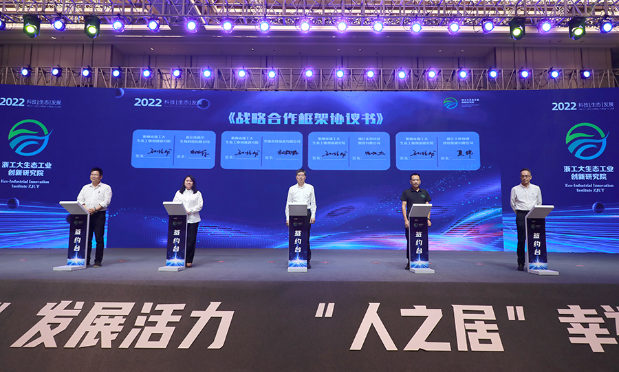 會上,吳國升為研究院授牌,王良春向研究院負責人頒發聘書,李芝偉和虞曉芬分別代表龍游縣人民政府與浙江工業大學簽訂《共建衢州市浙工大生態工業創新研究院協議》。浙江香滿亭生物科技有限公司、中浙高鐵軸承有限公司、禾川科技股份有限公司、浙江千葉環境建設集團有限公司等龍頭企業與研究院簽訂了戰略合作協議。