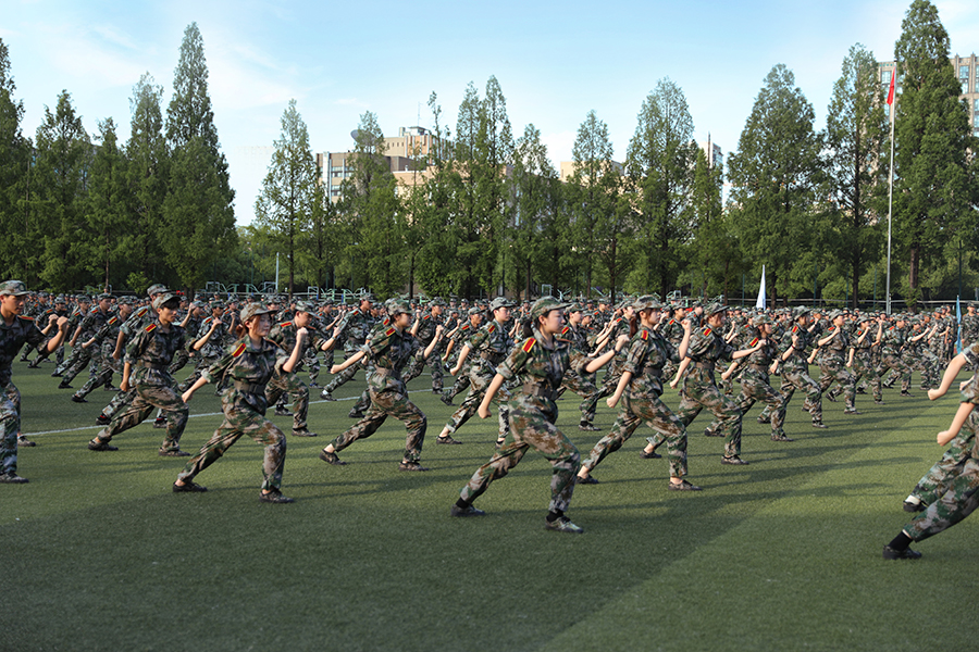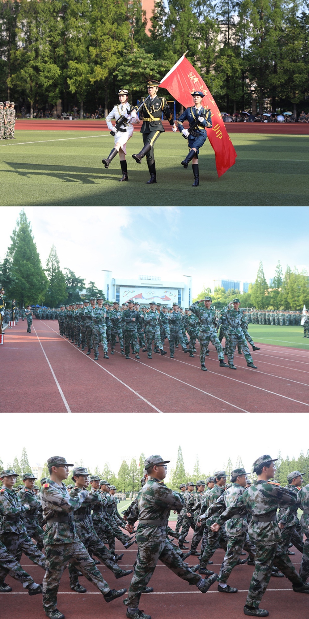 虞曉芬宣布大會(huì)開(kāi)始并檢閱學(xué)生軍訓(xùn)方陣。參訓(xùn)學(xué)生分別進(jìn)行分列式和軍體拳表演等軍事訓(xùn)練成果展示。???