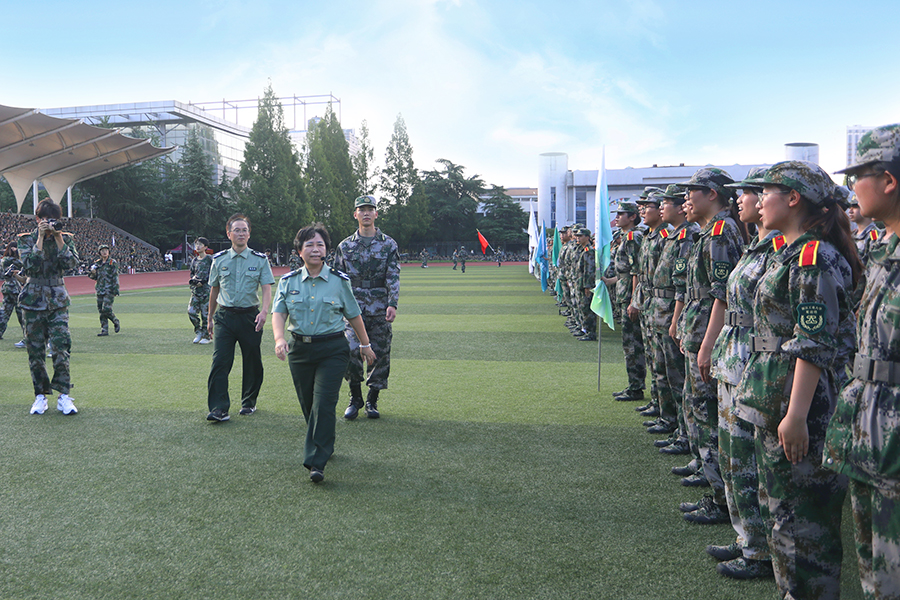 虞曉芬檢閱參訓(xùn)學(xué)生方陣