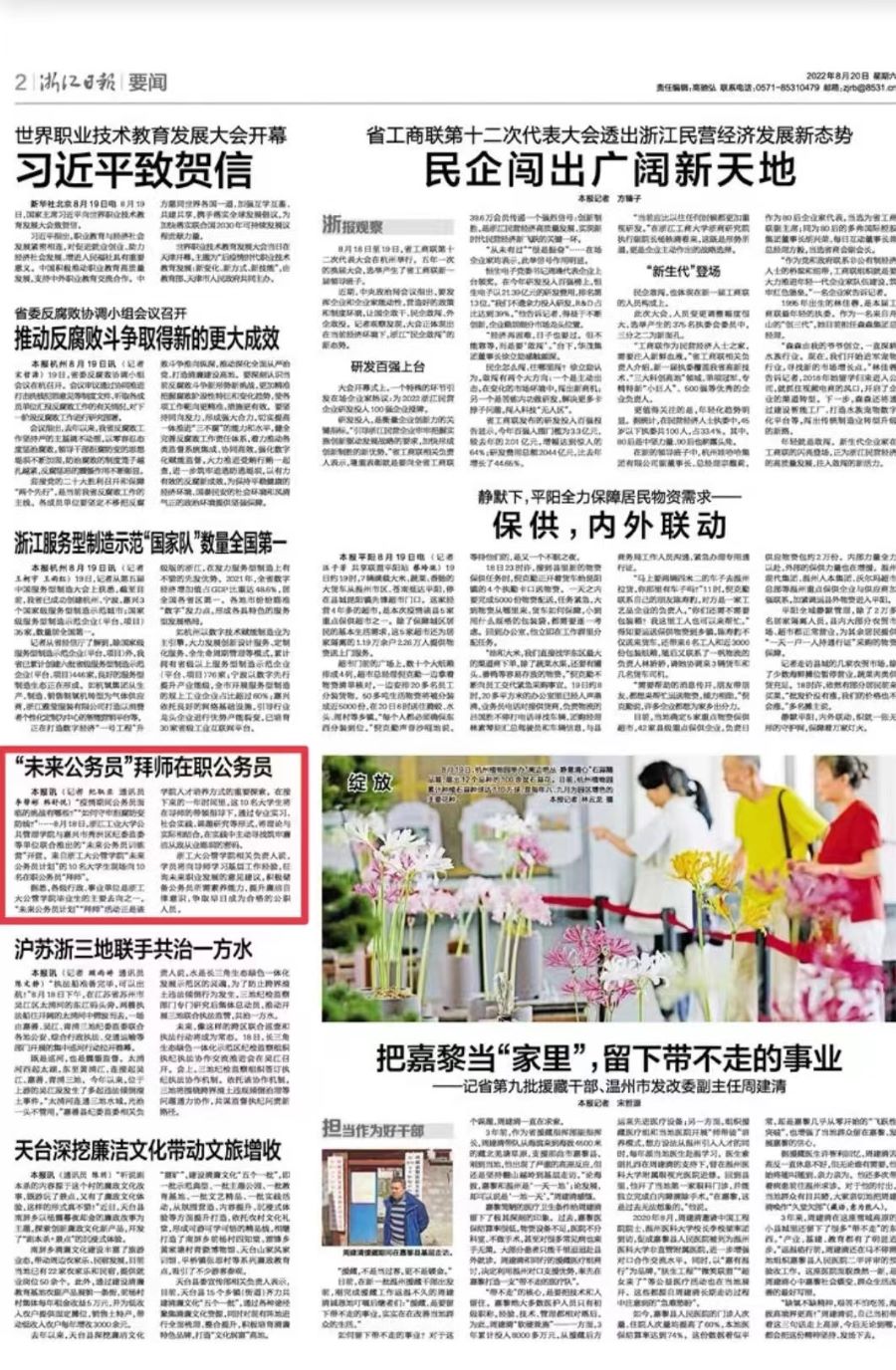8月20日,《浙江日?qǐng)?bào)》以《“未來公務(wù)員”拜師在職公務(wù)員》為題,報(bào)道我校公共管理學(xué)院與嘉興市秀洲區(qū)紀(jì)委監(jiān)委等單位聯(lián)合推出的“未來公務(wù)員訓(xùn)練營(yíng)”開營(yíng),來自公管學(xué)院“未來公務(wù)員計(jì)劃”的10名大學(xué)生現(xiàn)場(chǎng)向10位在職公務(wù)員“拜師”。