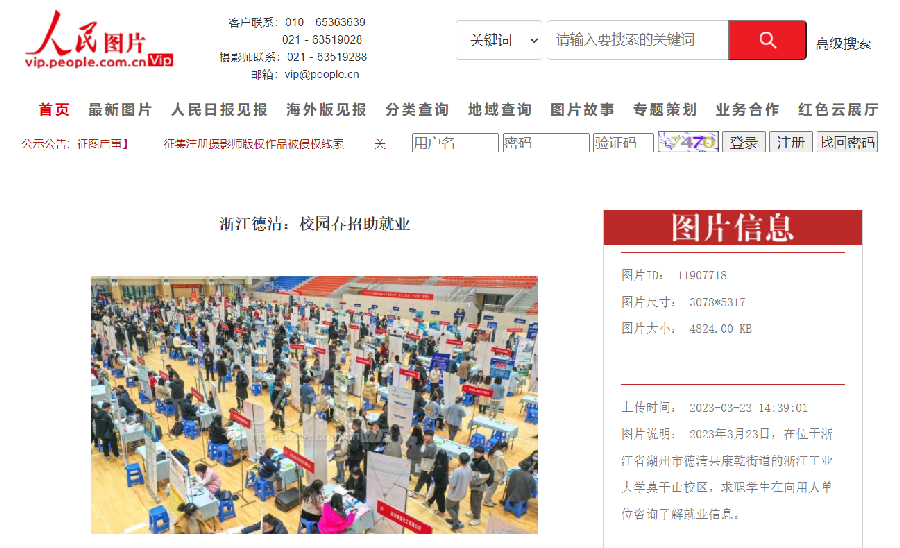 3月23日,人民網《浙江德清:校園春招助就業》以圖片新聞的形式,報道我校莫干山校區的春季招聘會活動。
