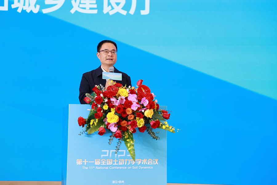 宋炳堅代表省住房和城鄉(xiāng)建設廳致辭。他表示,浙江省作為我國的經(jīng)濟強省,城市軌道交通建設蓬勃發(fā)展,基礎設施防震減災能力穩(wěn)步提升,相關工程規(guī)模大、數(shù)量多、環(huán)境復雜,是土動力學研究和應用的重要基地之一。希望廣大研究者和實踐者能夠攜手并肩,共同推動學科的建設和發(fā)展,為全國土木工程建設防災減災工作及可持續(xù)發(fā)展貢獻更多的智慧和力量。