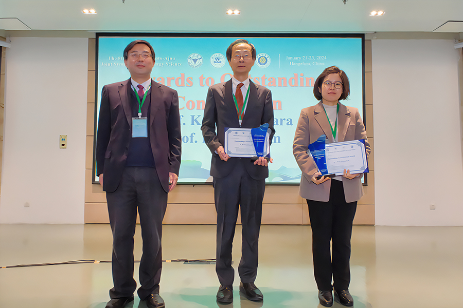 會(huì)上,高翔代表組委會(huì)向京都大學(xué)Keiichi Ishihara教授、亞洲大學(xué)Kihong Kim教授頒發(fā)杰出貢獻(xiàn)獎(jiǎng)。