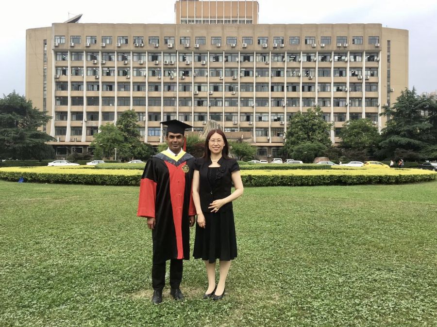 法魯克與化學(xué)工程學(xué)院的緣分始于2013年。那年,他來(lái)到學(xué)院攻讀化學(xué)工程與技術(shù)博士學(xué)位并加入周瑛教授課題組,一直致力于“鈷鐵酸納米顆粒在水生生物和模型蛋白中的納米毒理學(xué)機(jī)制”的研究。博士學(xué)習(xí)期間,他以第一作者和共同通訊作者的身份發(fā)表了6篇SCI論文。導(dǎo)師周瑛是這樣評(píng)價(jià)法魯克的:學(xué)習(xí)目的明確,科研工作兢兢業(yè)業(yè),動(dòng)手能力強(qiáng)。周瑛特別強(qiáng)調(diào),法魯克有很好的團(tuán)隊(duì)合作精神,能夠帶動(dòng)團(tuán)隊(duì)一起進(jìn)步。2016年,法魯克順利畢業(yè),隨后在上海交通大學(xué)、南京大學(xué)進(jìn)行博士后研究工作,并獲得了國(guó)家自然科學(xué)基金。
