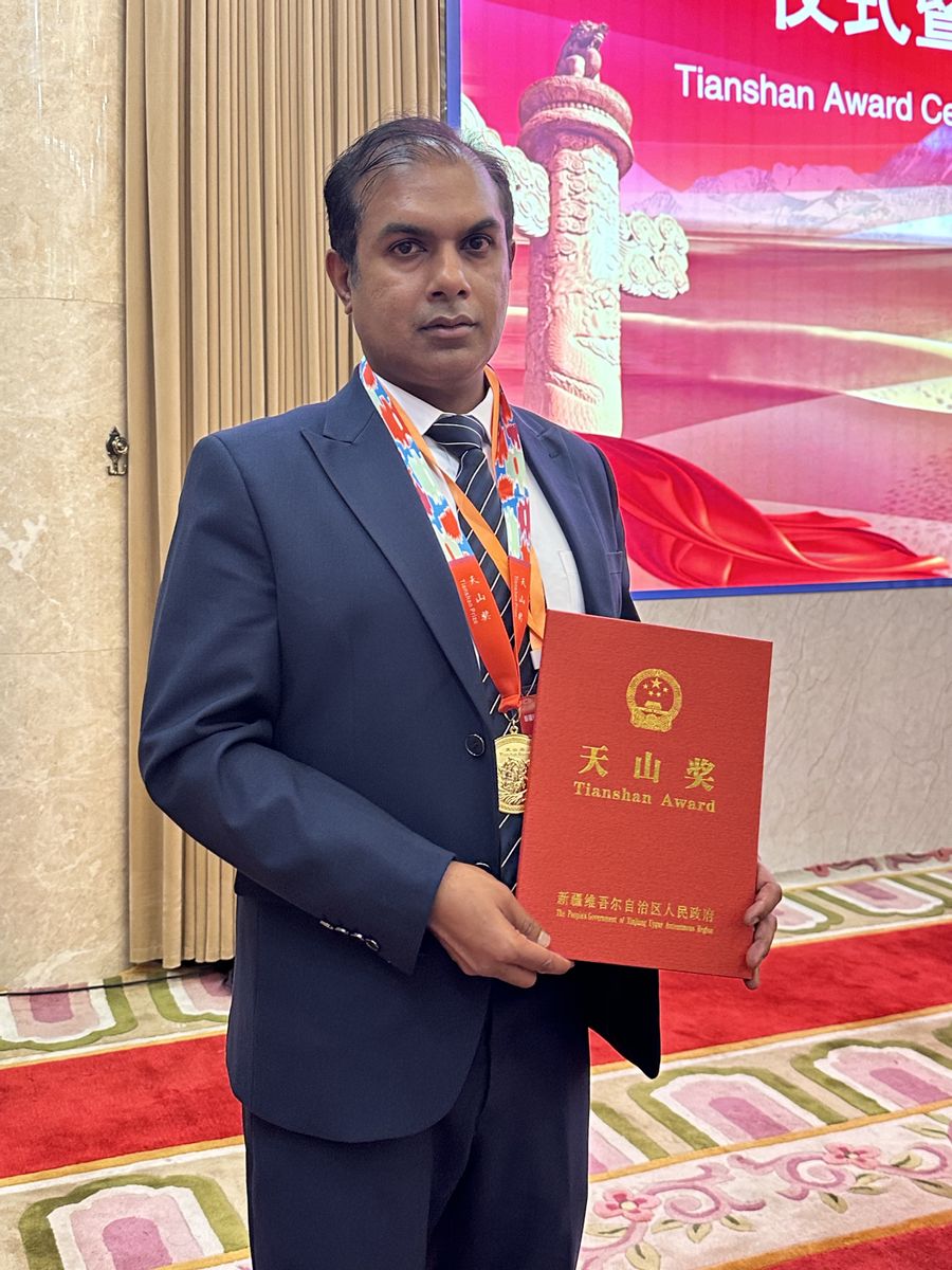 2022年,法魯克有幸成為新疆大學(xué)招聘的第一位外國(guó)高層次人才。“新疆大學(xué)的魅力是多方面的:豐富的文化、友好的同事、多樣的美食,以及靠近我的祖國(guó)巴基斯坦。”2023年,他入選新疆維吾爾自治區(qū)“天池英才”引進(jìn)計(jì)劃。