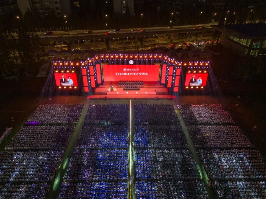 9月13日晚,學校在朝暉校區隆重舉行2024級本科生開學典禮。學校黨政領導班?成員蔡袁強、?翔、陳慶紅、?曉明、張笑欽、陳耀、吳巨慧出席典禮。全體2024級本科新生、相關職能部門負責人、各學院主要負責人、輔導員、班主任和教師代表參加典禮。典禮由校黨委副書記吳巨慧主持。