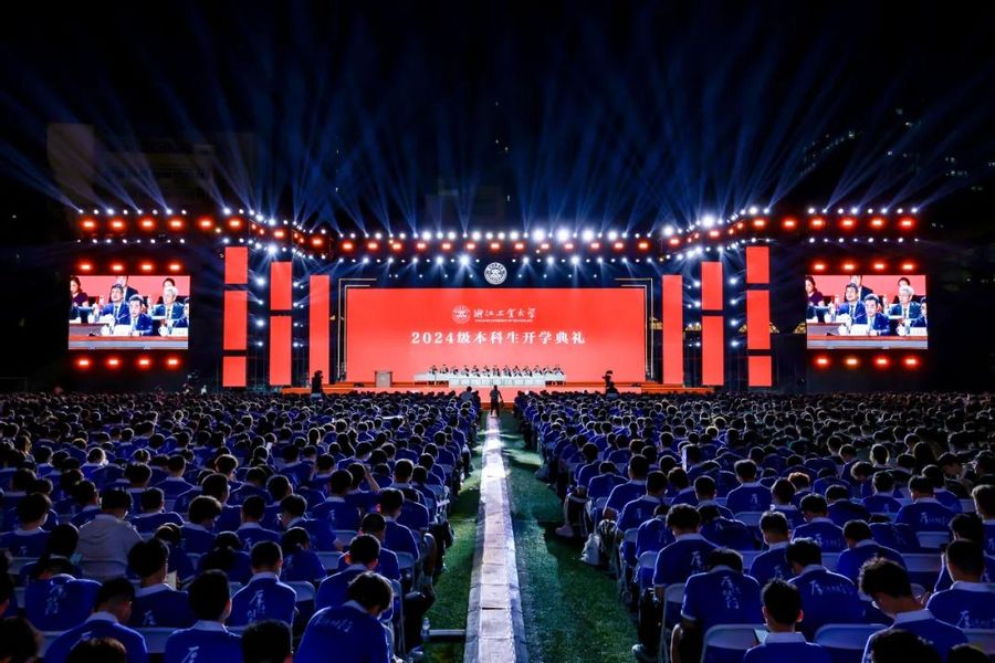 典禮上,還舉行了校徽佩戴儀式、學生代表朗誦、集體生日慶祝儀式,全體合唱《浙江工業大學校歌》。