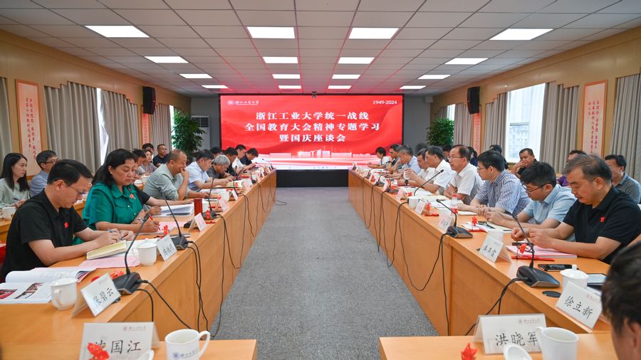 9月30日上午,學校召開統一戰線全國教育大會精神專題學習暨國慶座談會,慶祝中華人民共和國成立75周年,慶祝中國共產黨領導的多黨合作和政治協商制度確立75周年,就更好地發揮學校統一戰線的優勢作用,凝心聚力建設中國特色、世界一流大學聽取黨外代表人士意見和建議。校黨委書記蔡袁強出席會議并講話。校黨委副書記吳巨慧主持會議。學校各級黨外人大代表和政協委員、各民主黨派基層組織和統戰團體負責人、黨外高層次人才、歸僑僑眷和少數民族教師代表出席座談會。