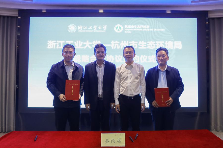 10月21日,浙江工業(yè)大學(xué)與杭州市生態(tài)環(huán)境局戰(zhàn)略合作協(xié)議簽約儀式在朝暉校區(qū)舉行。杭州市生態(tài)環(huán)境局黨組書記、局長馬利陽,黨組成員、二級巡視員馬衛(wèi)國,二級巡視員曹建松,校黨委書記蔡袁強(qiáng),黨委委員、副校長胡軍等出席儀式。參加本次活動的還有市人大城建環(huán)保工委副主任、市政協(xié)常委吳華軍,市科學(xué)技術(shù)協(xié)會副主席、市政協(xié)常委周力軍,市政協(xié)城建和人口資源環(huán)境委員會辦公室主任金慧忠。活動由學(xué)校工業(yè)技術(shù)轉(zhuǎn)化與推廣中心負(fù)責(zé)人主持。