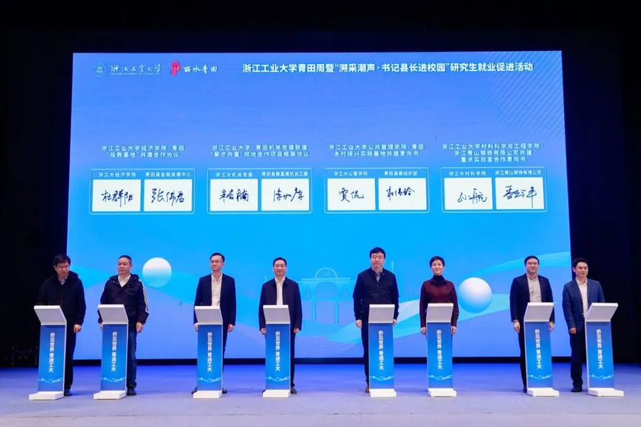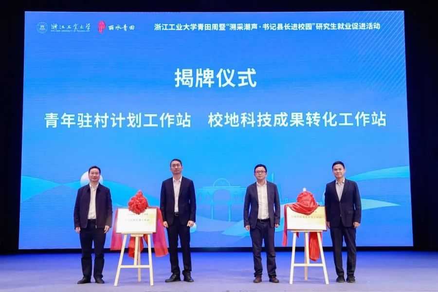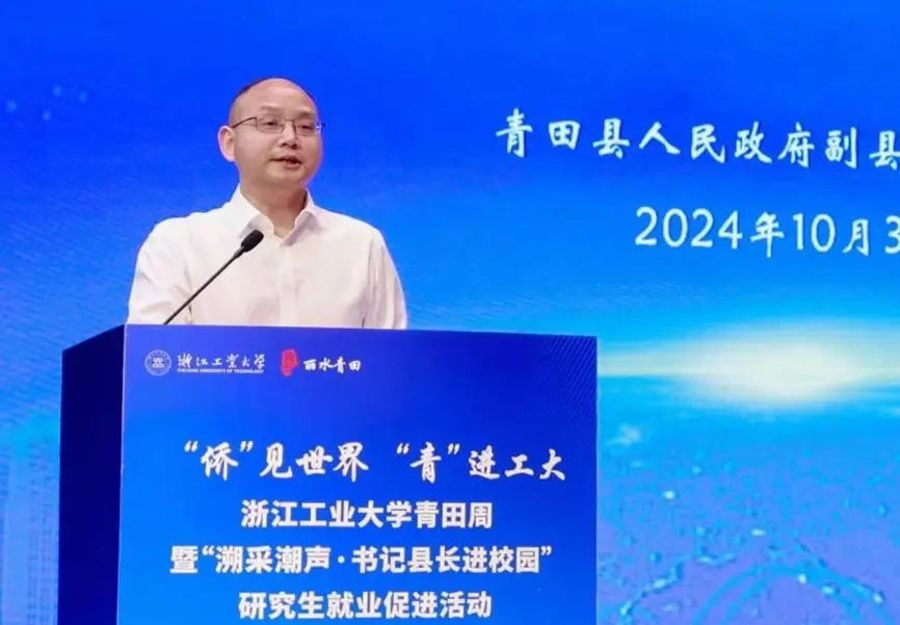 10月30日下午,浙江工業大學青田周暨“溯采潮聲·書記縣長進校園”研究生就業促進活動在屏峰校區舉行。活動包含啟動儀式及系列子活動,通過實施優秀研究生崗位鍛煉、青年駐村計劃、高層次和緊缺人才引進、政聘企用招聘、專場優質企業招聘會等工作,并同期推出青田美食進校園與傳統美食品鑒、青田文化進校園與特色石雕賞析、咖啡體驗課等生活文化活動,促進研究生赴青田就業創業,推進校地人才合作。