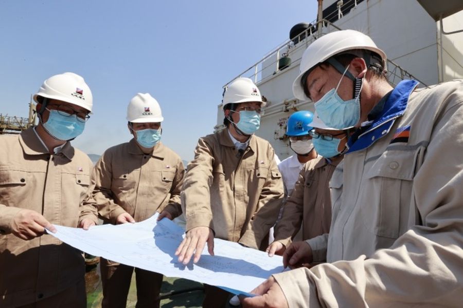 高翔(左三)與項(xiàng)目組成員在工程現(xiàn)場(chǎng)工作